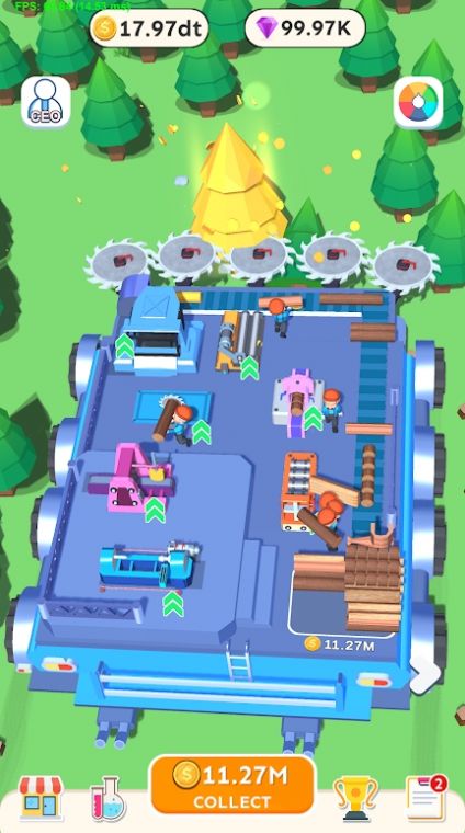 2.收集金币升级工具,解锁新伐木设备,提高技巧;